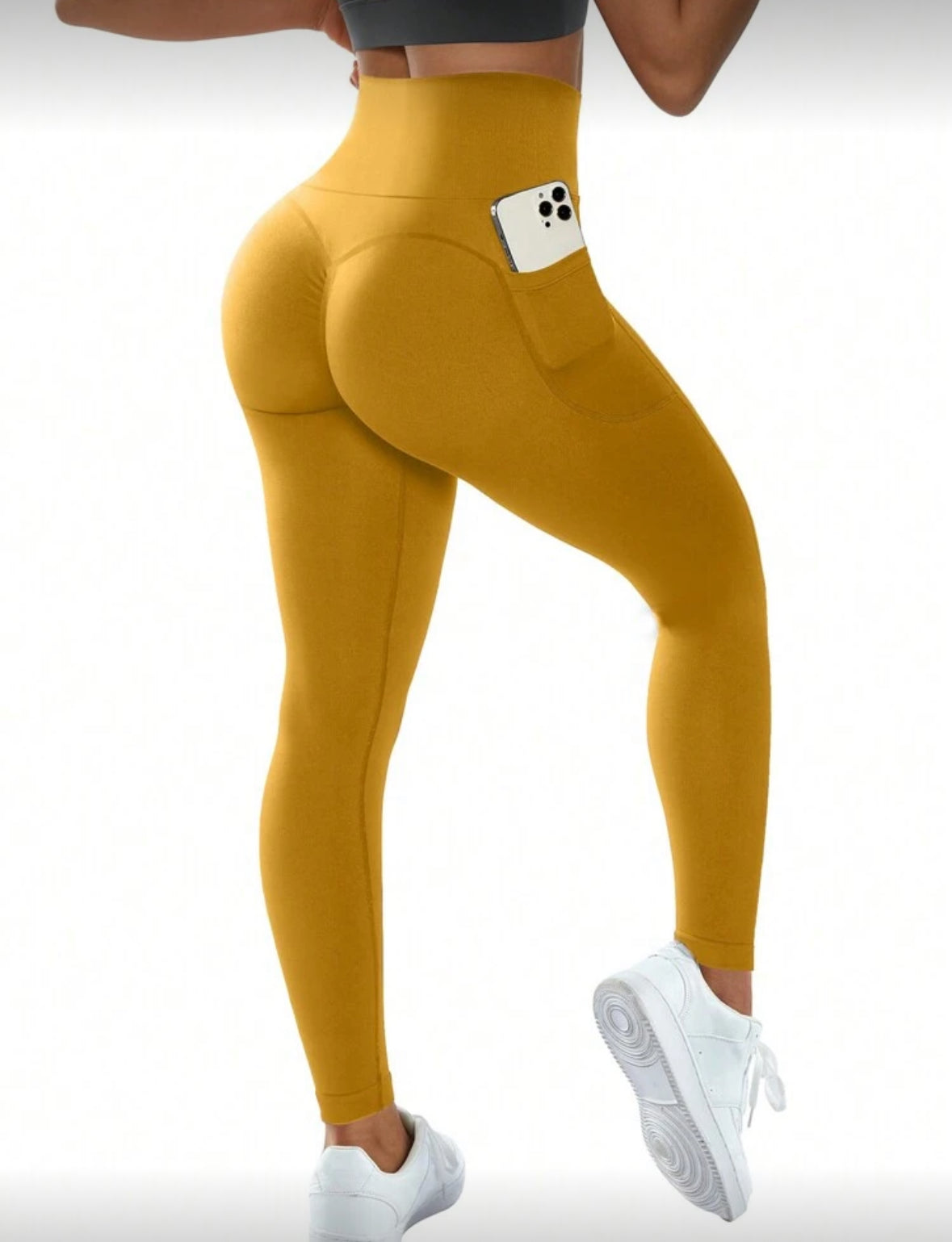 Leggins con bolsa, Push Up, Sin costuras, Tono Liso